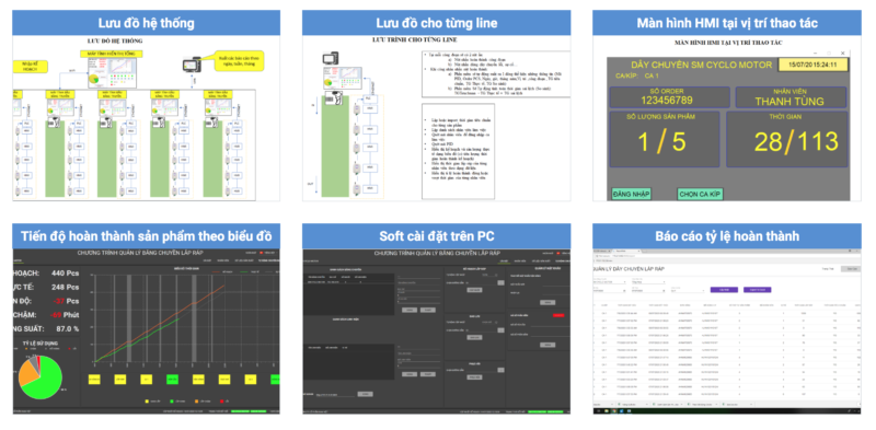 1) – Tính toán được thời gian làm việc của từng công nhân theo từng giai đoạn(thời gian, mã động cơ, theo vị trí lắp ráp, nhân viên,v.v.v).